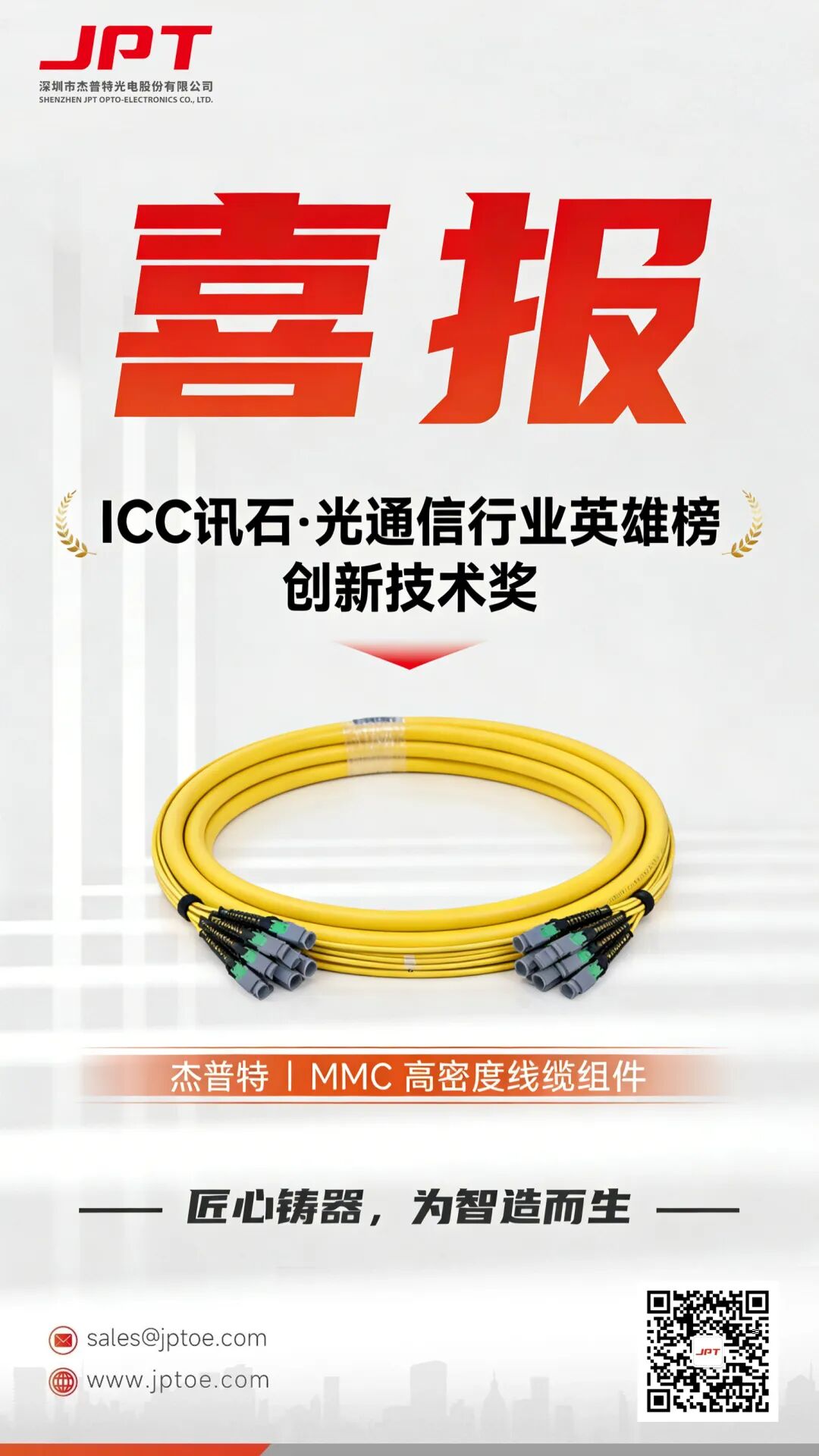 榮耀加冕|杰普特 MMC 高密度線纜組件榮獲訊石英雄榜 “創新技術獎”
